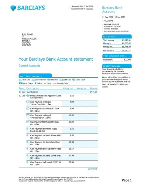 Read Online barclays bank statement template rtf